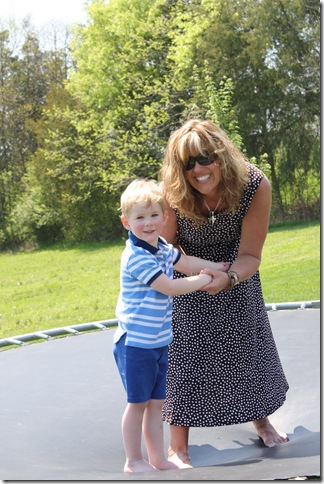 The rest of the afternoon was spent frolicking outside in the 80 degree weather…it was a beautiful day! My sister-in-law’s sister (“Auntie Jill”) was kind enough to supervise (i.e. jump on the trampoline!) my kiddos. Thanks, Jill!